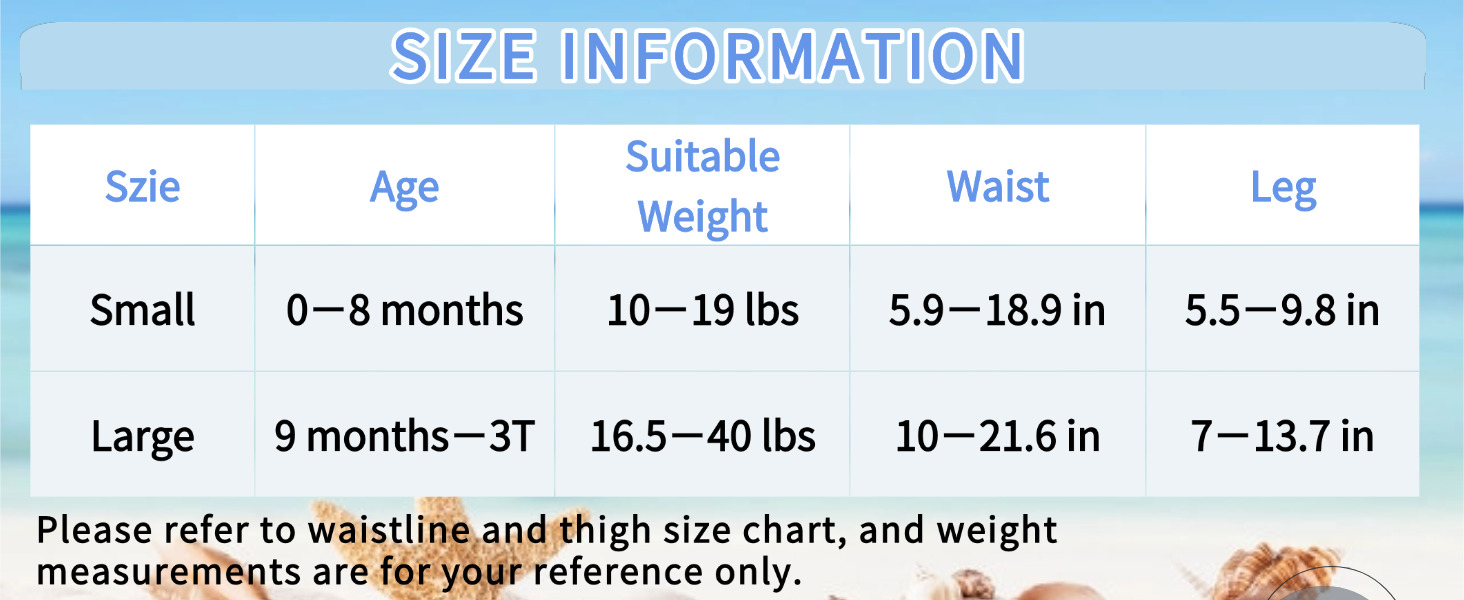 • Please note that our One Size Swim Diapers are designed for a snug fit, optimally suited for babies weighing 10-19 lbs. If your baby is nearing the upper weight limit or needs more room to grow, we recommend exploring our Large Size Swim Diapers for a more comfortable fit.
